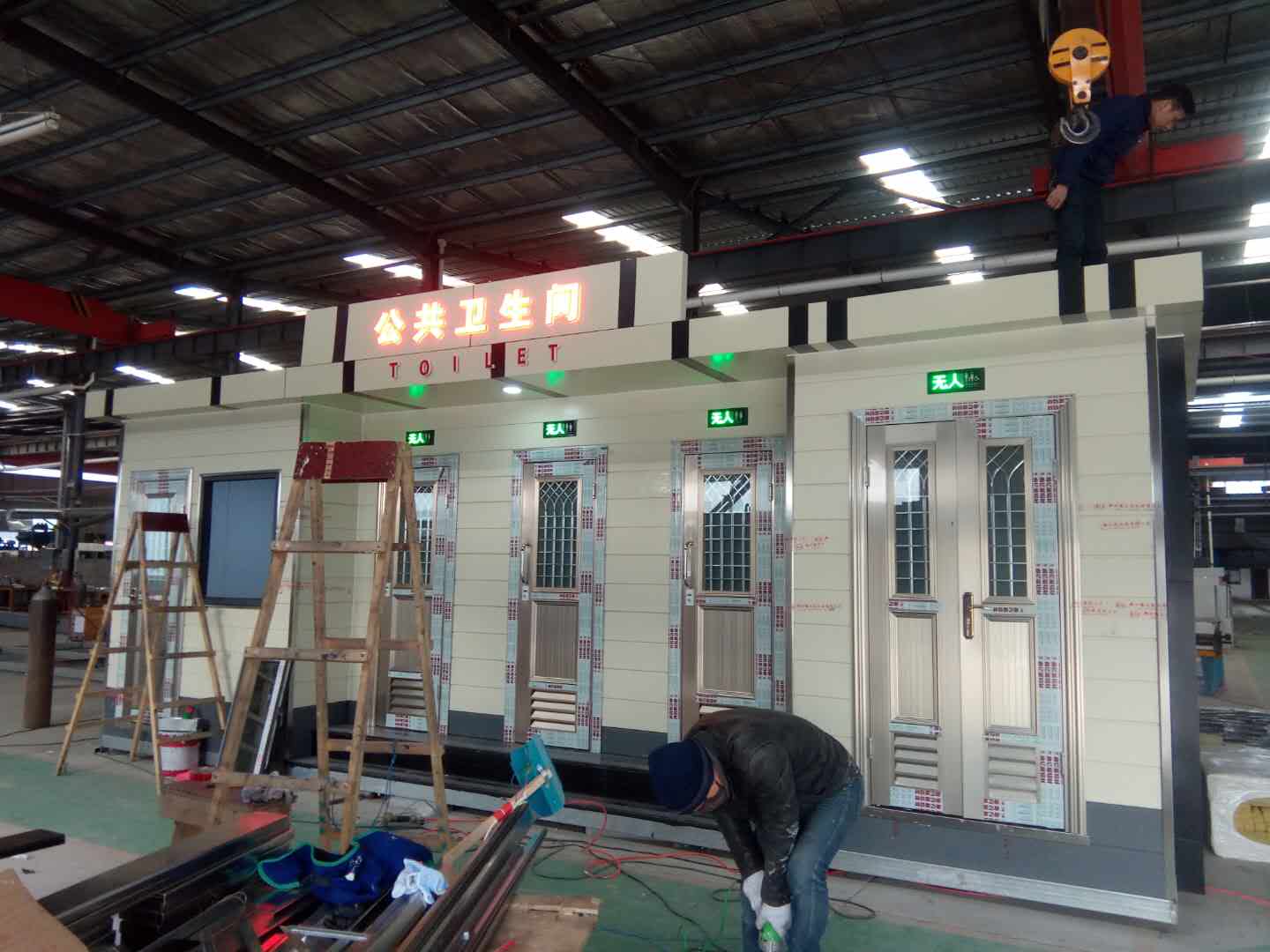 1、房體結(jié)構(gòu): 采用輕鋼龍骨結(jié)構(gòu),鋼材全部使用國(guó)家標(biāo)準(zhǔn)鍍鋅鋼材。根據(jù)房體的大小特選用國(guó)標(biāo)方管(50-100)焊接而成。鍍鋅管厚度為2.8mm,方管經(jīng)過(guò)除銹后進(jìn)行鍍鋅、防腐處理。這樣就會(huì)延長(zhǎng)廁所使用壽命。